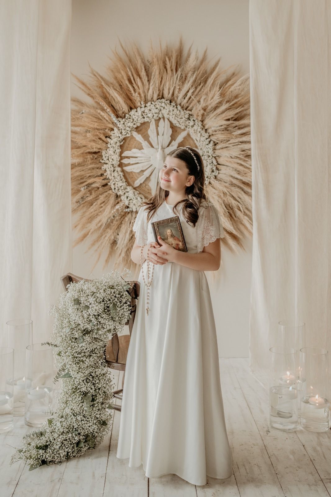 Vestidos de primera comunión de estilo romántico en telas como tules, gasas y rasos podemos diseñar vestidos acorde a la ocasión resaltando tu esencia